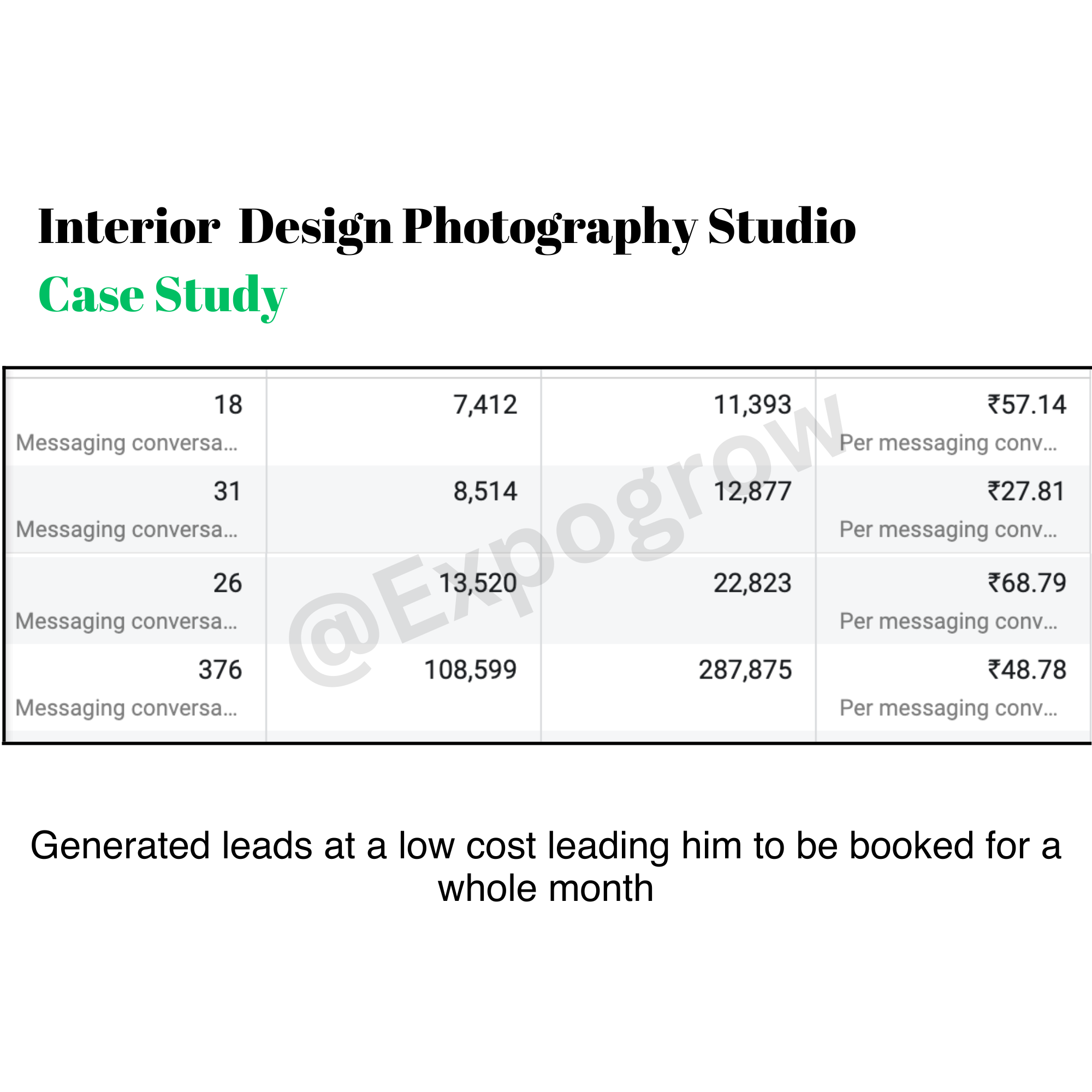 The cost per lead was less than a dollar and they were able to book their studio for the next whole month.